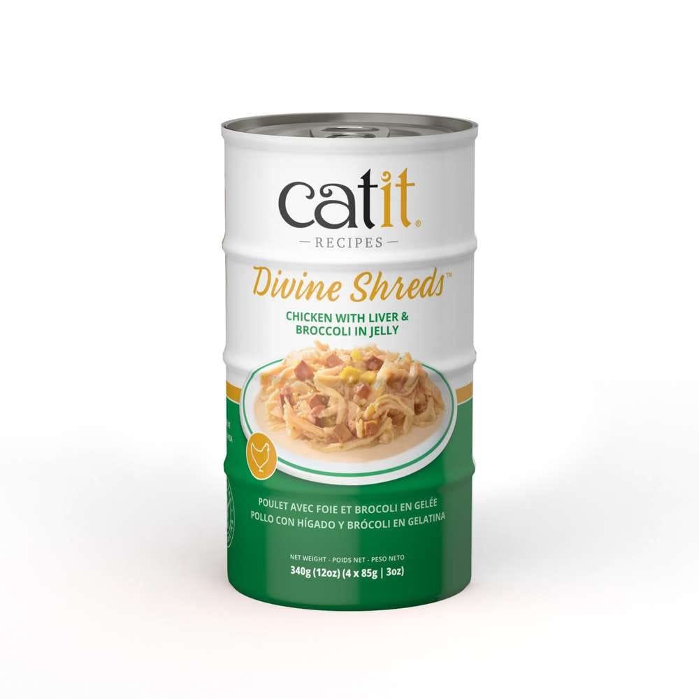 Our delicious Catit Divine Shreds recipes are now also available in jelly, to be served as a complementary dish rich in poultry. Each shrink wrapped pack of Divine Shreds in Jelly includes 4 cans, each containing a 3 oz. serving.