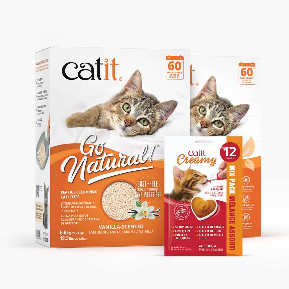 5. Subscription includes 2 boxes of litter (24.6 lbs) and a Catit Creamy Variety 12 Pack