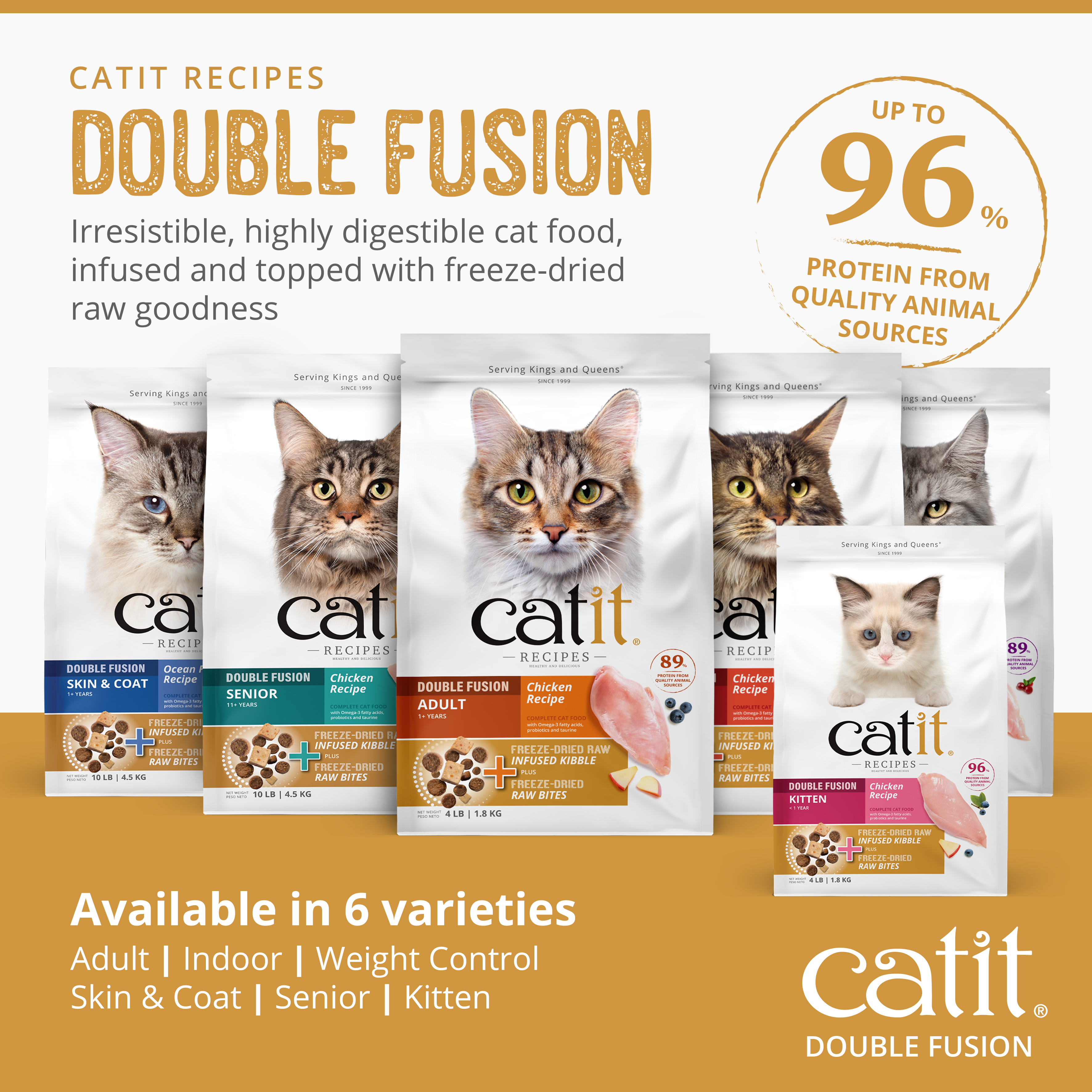 Catit Recipes DOUBLE FUSION is available in 6 delicious varieties, each crafted to meet the unique needs of cats of all ages. Catit Recipes are compatible with Catit feeders, making mealtime easy and convenient for you and your cat!