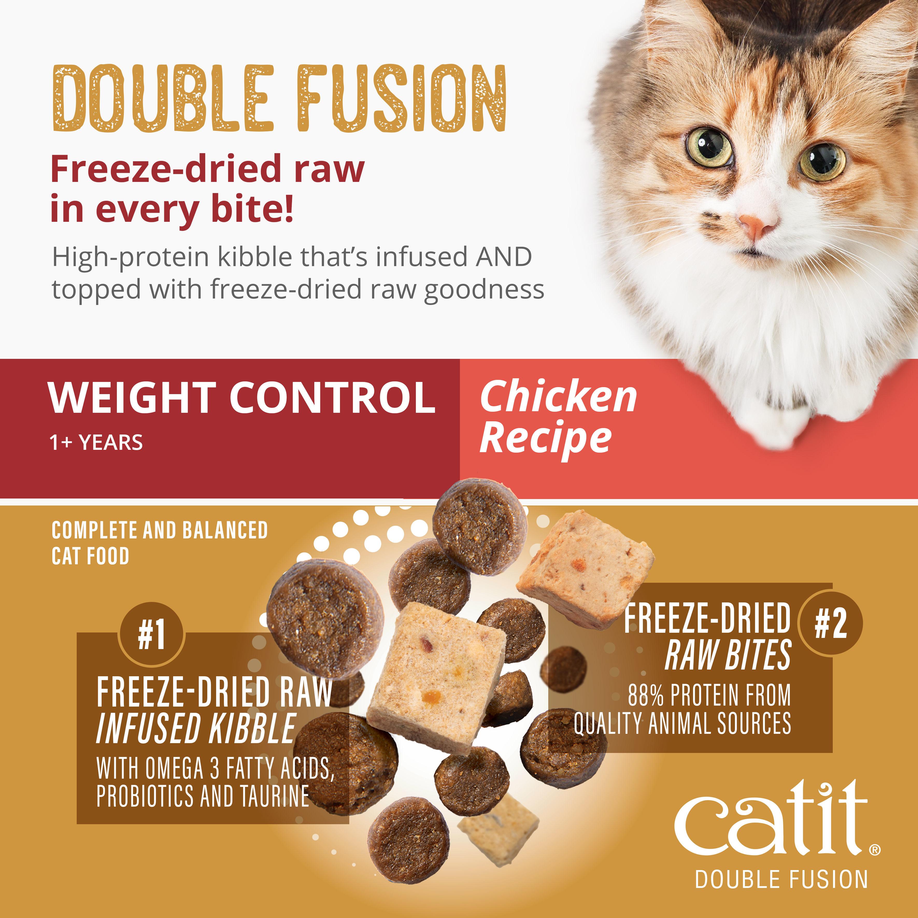 Catit Recipes DOUBLE FUSION combines freeze-dried infused kibble with freeze-dried bites, delivering a balanced, flavorful, and nutritious meal every time. It’s the perfect blend of raw nutrition and pure flavor for your cat’s daily vitality and well-being!